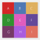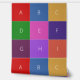 Plantilla simple de letras (¿quizás para las iniciales?) pero que se puede borrar por completo si se prefiere. Las cartas están colocadas en 9 cuadros de cuadros coloridos para un patrón brillante y divertido.