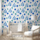 Papel Pintado Cuerdas azules SERENE y acuarela de hojas verdes