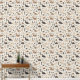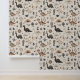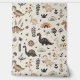 Perfecto para una guardería o un dormitorio para niños pequeños, este tapiz tiene una variedad de lindos dinosaurios en un patrón repitiendo, junto con hojas de estilo boho y arcos. Predominan los colores marrón y marrón, colocados sobre un fondo crema.