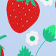 Papel Pintado Cute Blue Strawberry & Daisy Pattern Niños Nursera