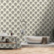 Stylised cute floral block print style wallpaper with whimsical sunflowers in warm earthy tones of charcoal and light beige. Perfect for nurseries, girls bedroom or kids bathrooms