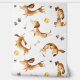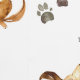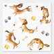 Pastas de dachshund lúdicas con pelota de tenis, huellas de pata, huesos y abejorros en fondo blanco ©OctopusArts & DecampStudios