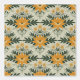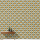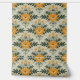 Patrón vintage de damasco floral con flores amarillas y hojas verdes sobre fondo blanco crema texturado.