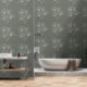 Papel pintado a mano con motivos florales de Dandelions. Bonito diseño rústico con un fondo verde moderno.