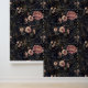 Papel Pintado Dark Academia Spider Webs con flores rosas
