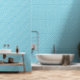 Un diseño colorido de pequeños puntos en azul turquesa y blanco. Un diseño fresco para dormitorios de niños pequeños o cualquier habitación de la casa.