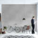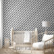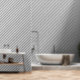 A pattern of diagonal gray and white stripes fills the image, creating a sleek, modern design. The alternating lines convey a sense of motion and rhythm.