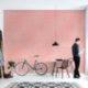 Diagonal pattern of pink and white stripes, evenly spaced across the image, creating a bold, geometric and modern design with a clean, dynamic feel.