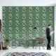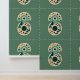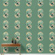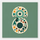 Una obra de arte geométrica vibrante con motivos circulares en tonos verde azulados, naranjas y marrones. El diseño retro presenta un estilo vintage con formas lúdicas y un elemento de árbol minimalista en la parte inferior.