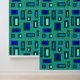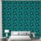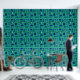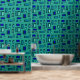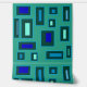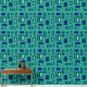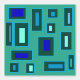 rectángulos y cuadrados azul claro y verde menta sobre fondo verde. Patrón simple y colorido