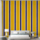 Este diseño moderno y colorido se caracteriza por unas estriberas verticales de colores dorados, amarillo oscuro, azul marino oscuro y franjas blancas.