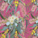 Este fondo de pantalla floral botánico presenta un diseño inspirado en la flora australiana nativa, destacando las vibrantes flores de eucalipto, biberón y wattle, sobre un fondo rosa alegre y brillante. Perfecto para añadir un toque de elegancia australiana a cualquier habitación, transforma espacios con su belleza única y natural, ilustrada por el ilustrador australiano Jo Story de Sketchbook Designs.