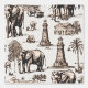Este lujoso papel pintado en la pared presenta un conjunto de elefantes africanos grises junto con monumentos o estatuas menores.