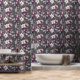Esta obra de arte muestra un sofisticado patrón floral con flores y follaje intrincadamente detallados en ricos tonos crema, ciruela y gris. Los delicados ilustraciones de helechos, hojas y flores, colocados sobre un fondo carbonífero oscuro, crean un sorprendente contraste, resaltando la belleza de cada elemento. El diseño combina los motivos botánicos clásicos con una paleta de colores moderna, lo que da lugar a una composición atemporal y elegante que exuda un sentido de belleza refinada.