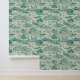 toile de jouy, pastoral landscape, teal pattern, french design, vintage style, country cottages, classic architecture, traditional decor, seamless pattern, countryside print, historical motif, elegant upholstery, idyllic scene, european style, timeless decor. This elegant teal toile de Jouy design on a cream background captures the essence of the European countryside with timeless charm. The pattern features an idyllic composition of small churches, cottages, and majestic trees scattered across a serene pastoral landscape.