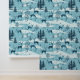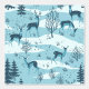 Retro de los años 1950 estilo años 1960 bosques de invierno maravillosos con ciervos en azul para habitación de niños, vivero, pasadizo, dormitorio