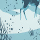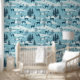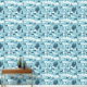 Papel Pintado Elegante ciervo retro azul de madera festivo