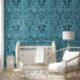 Papel Pintado Elegante Damask Oscuro Turquesa Barroco
