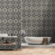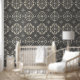 Papel Pintado Elegante diseño geométrico floral beige y gris