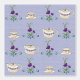 Añada un punto focal único a sus paredes con un fondo de paredes de piel y palo a la moda con elegantes teteras de china, tazas y platillos a juego y flores de fantasía juguetonas y estilizadas en 3 tonalidades de morado con verde azulados remolinos de colores que caen a su base, todo sobre un fondo de seda cruda de imitación de lavanda. Perfecto para cocinas, comedor, tetería, cafeterías, etc. Ideal para muchos estilos de decoración.