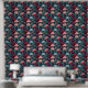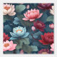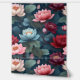 Elegante estampado moderno de flores de loto con azul oscuro y claro, vino tinto oscuro y rojo rosa, rosa y blanco, y tonos verde claro y verde oscuro verde azulado con un diseño de estilo máximo.