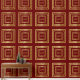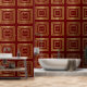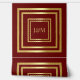 Papel pintado de burdeos rojo y dorado, elegante y glamuroso, con grandes cuadrados dorados brillantes y estrechamente ligados para producir un efecto de baldosas. Una opción de texto de personalizable para insertar monograma, iniciales, textos cortos o nombres. El color de fondo se puede personalizar individualmente.
