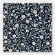 Este patrón floral impecable presenta delicadas mareas blancas con centros amarillos blandos, rodeadas de hojas verdes pálidas y pequeños brotes, todo ello con un fondo azul marino profundo inspirado en William Morris. La elegancia clásica y atemporal es perfecta para tapices, textiles y papelería. El contraste entre las flores vibrantes y el telón de fondo oscuro crea una estética sofisticada y apacible.