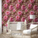 Refresca las paredes con este papel de pared autoadhesivo de moda, resaltando las rosas rosadas vibrantes y los acentos dorados de moda para un aspecto moderno.