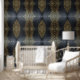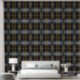Papel Pintado Elegante satinado negro con patrón de diseño dorad