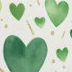 This design captures a fresh, botanical feel with watercolor hearts in a gradient of greens, from bright lime and peridot to deep hunter emerald. The soft, bleeding watercolor textures create an organic look that is perfectly balanced by shimmering gold glitter confetti and abstract dashes. Set against a warm, textured cream background, this pattern is ideal for eco-friendly branding, spring-themed decor, or a refreshing nature-inspired wallpaper.