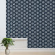 Papel tapiz de acento del patrón de la rueda del barco blanco azul de la Marina Un fondo de pantalla náutico con un patrón de rueda de barco blanco sobre un fondo azul marino. Perfecto para una pared de acentos o para un acondicionamiento de habitaciones que eleve la estética de tu espacio.