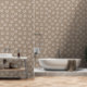 El papel pintado de palo y pelos permite cambiar fácilmente la decoración. Este sencillo patrón de estrellas con un fondo de color marrón oscuro se ve muy bien en cualquier habitación.