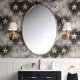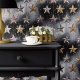 Alcance las estrellas con este cautivador fondo de pantalla celeste. Un patrón hipnotizador de estrellas brillantes en tonos dorados, plateados y rosados baila a través de un cielo nocturno oscuro, creando una atmósfera mágica y soñadora. Este fondo de pantalla adhesivo es fácil de aplicar y quitar, lo que lo hace perfecto para agregar un toque de maravilla cósmica a cualquier habitación.