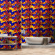 Un hermoso fondo azul real tiene flores enteras muy grandes que se parecen a un lirio en llamas en tonos rojos profundos, mostaza amarilla y negra que tiene fluidas hileras horizontales de acuarela suave y ondulada detrás de ellas. Este mural vintage floral de flores se basa en los estilos bizantino y rococó y tiene un toque de verano/primavera intemporal y elegante. Transforme cualquier habitación de tamaño majestuoso en una elegante pieza de declaración con este diseño exterior y interior. Este vibrante prado de campo inspirado en un diseño repetitivo impecable es ideal para cualquier sala de estar; baño o dormitorio que necesita un refresco o un toque de elegancia. Se adapta a las casas de campo, cabañas, casas y ambientes de negocios en inglés y francés.