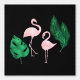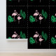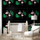 Papel Pintado Flamencos rosas y hojas de palma en negro