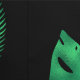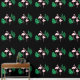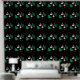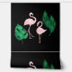 Este fondo de pantalla personalizado presenta un diseño de flamingo rosa tropical con un fondo negro. Una imagen de dos flamencos rosas y hojas de palma verde vibrante está recubierta de baldosas en el fondo de la pared. La imagen tiene un diseño de Relieve metalizado que le da un aspecto metálico.