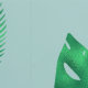 Papel Pintado Flamencos rosas y hojas de palma en Verde azulado