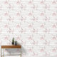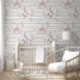 Las paredes están decoradas con un papel pintado de color rosa pastel. Con delicadas flores horizontales, es perfecto para crear un ambiente suave y elegante.