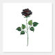 Rosa negro simbólico, dibujado de forma artística, con tallos verdes y hojas sobre fondo blanco. Rosa negro.