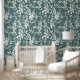 Papel Pintado Flora wallpaper in teal and white