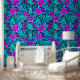 Papel Pintado Floral azul morado y Verde azulado de bonito