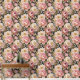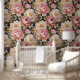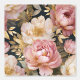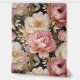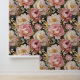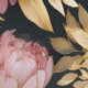 Watercolor elegante peonías victorianas rosadas y blancas delineadas en oro con papel de fondo negro de carbón vegetal.