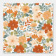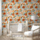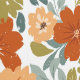 Patrón floral con cálidos tonos otoñales de naranja quemado, beige suave y verdes mudos. Las flores estilizadas y las hojas delicadas están dispersas por todos lados.