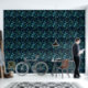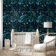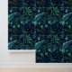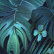 Papel Pintado Flores azules de hojas tropicales