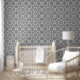 Papel Pintado Flores blancas violetas ornamentales sin mar paste