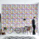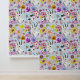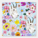 Perfil lateral de una cabra blanca de montaña. Flores silvestres rodean la cabra de la montaña, todas dibujadas en un estilo de tatuaje en un fondo de azul