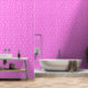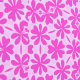 Este diseño geométrico alegre y femenino presenta flores de bonito fucsia en un fondo rosa pálido.