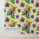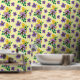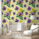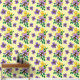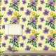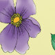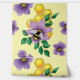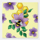 Una linda abeja en una flor de color lavanda con un peine de miel y fondo amarillo claro.