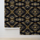 Papel Pintado Flores de oro exquisitas sobre satén negro