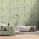 Bonito de flores silvestres cáscara y palo diseño de papel pintado para una pared de acento o pared completa. Fondo verde.